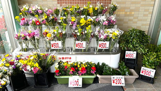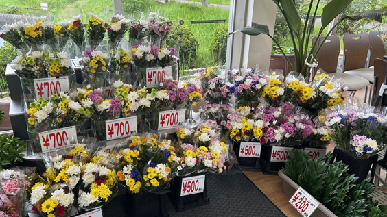 お気軽にお参りいただけるように、管理事務所、休憩所でお供え用のお花を常時販売しております。